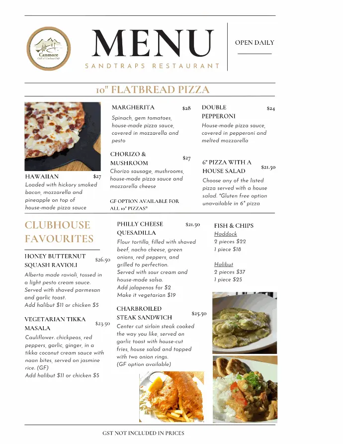 Open year-round with the best views in the Bow Valley! In summer, our spectacular patio takes centre stage, while winter visitors enjoy the mountain views through our floor to ceiling window wall. Our menu changes seasonally, with a variety of choices for every taste. Fresh-made soups daily, menu features and fast, friendly service.
